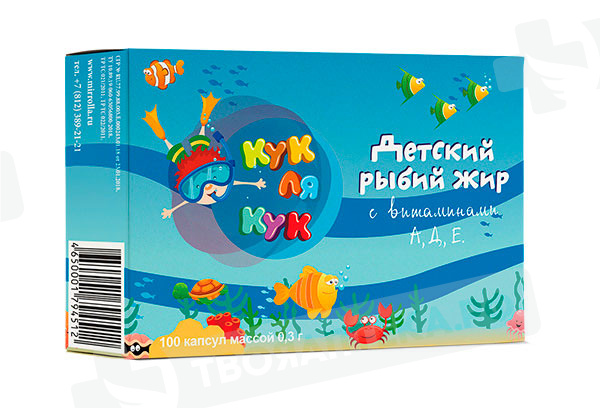 Рыбий жир детский с витамином А,Д,Е с 3-х лет капсулы N100 БАД