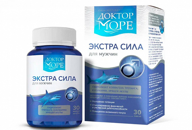 Доктор море экстра сила 30 шт. капсулы массой 500 мг – мощный комплекс для мужского здоровья и энергии! Добавка создана на основе уникальных морских компонентов – трепанга, кукумарии, а также хрящей ската и акулы. Формула усиливает энергетический обмен, повышает выносливость, поддерживает иммунитет и способствует регенерации тканей. Гидролизаты из хрящей насыщают организм биоактивными пептидами и коллагеном, укрепляя суставы и улучшая кровообращение. Комплекс помогает снизить усталость, повысить жизненный тонус и поддержать репродуктивную систему. В упаковке – 30 капсул по 500 мг. Рекомендуется принимать по 1 капсуле 3 раза в день во время еды.