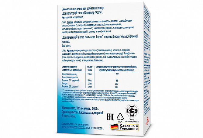 Экстракт виноградных косточек является одним из наиболее богатых среди известных природных средств по содержанию уникальных полифенольных соединений проантоцианидинов, которые укрепляют стенки капилляров и других кровеносных сосудов, в том числе венозных, улучшают кровообращение. Проантоцианидины относятся к одним из мощных природных антиоксидантов и способствуют улучшению состояния кожи.