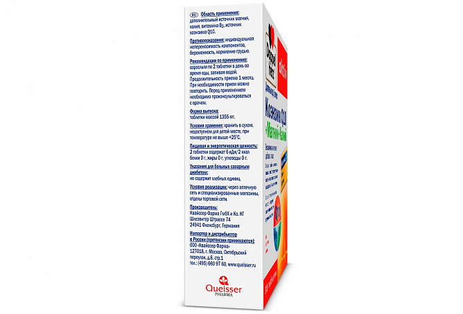 Магний – является неотъемлемой частью многих клеточных процессов, включая выработку энергии, синтез белков, клеточную репродукцию. Магний участвует в обмене углеводов, белков, нуклеиновых кислот, проведении нервного возбуждения, способствует сокращению миокарда, повышает устойчивость к стрессу, обладает антиаритмическим действием. Также магний участвует в регуляции метаболизма кальция на уровне гормонов. При недостаточности магния развиваются утомление, расстройства мышления, раздражительность, слабость, нарушения со стороны сердечно-сосудистой системы, бессонница. При высоких физических и умственных нагрузках организму необходимы магний и кальций, которые незаменимы для нормальной работы сердца, скелетных мышц и поддержания хорошего состояния костной системы.