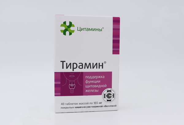 Компоненты для Тирамина, получаемые из щитовидных желез крупного рогатого скота, представляют собой комплекс белков и нуклеопротеидов, обладающих избирательным действием на клетки щитовидной железы, что способствует восстановлению ее функционально-органических свойств.