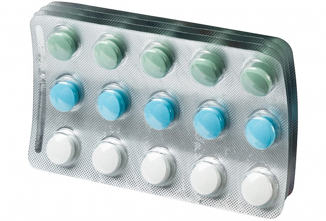 Таблетка № 2 голубого цвета: