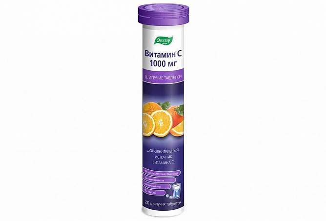 1 таблетка шипучая 1000 мг содержит: активное вещество: аскорбиновой кислоты 1000.00 мг; вспомогательные вещества: натрия гидрокарбонат - 821.00 мг, натрия карбонат - 152.00 мг, лимонная кислота - 1030.00 мг, сорбитол - 808.00 мг, ароматизатор лимонный - 75.00 мг, рибофлавина натрия фосфат - 1.00 мг, натрия сахаринат - 5.00 мг, макрогол 6000 - 60.00 мг, натрия бензоат - 40.00 мг, повидон-К30 - 8.00 мг.
