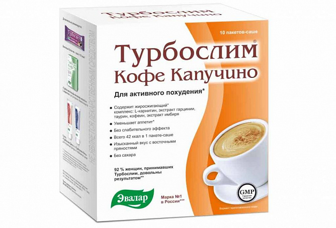 Инструкция по применению Напиток Эвалар Турбослим для похудения Кофе Капучино 9,5 г 10 саше