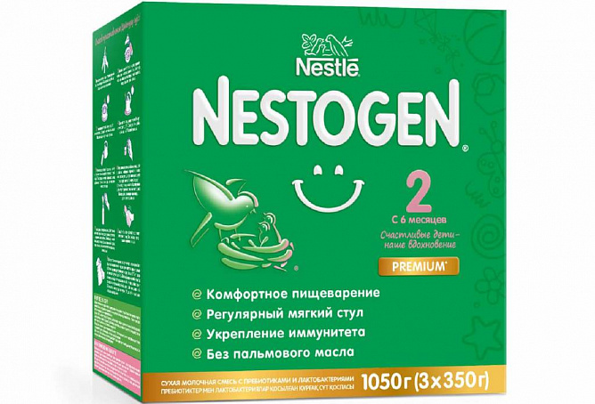 Смесь NESTOGEN® 2 с пребиотиками Prebio® и уникальными лактобактериями L.reuteri способствует улучшению моторики кишечника, формированию регулярного мягкого стула и становлению здоровой микрофлоры. Здоровая кишечная микрофлора необходима для поддержания, развития и укрепления иммунитета.