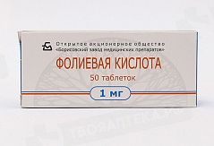 Фолиевая кислота 1 мг таблетки N50