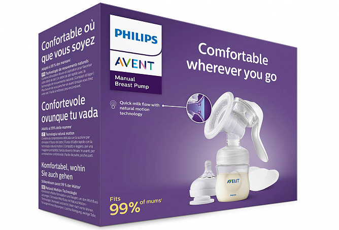 Ручной молокоотсос Philips Avent разработан с учетом понимания принципов сосания ребенка, размеров и форм груди, поэтому обеспечивает естественное и бережное сцеживание. Универсальная насадка молокоотсоса адаптируется под любую форму и размер соска и подходит 99% мам¹.