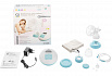 Молокоотсос, электронный блок, силиконовая воздуховодная трубка с двумя коннекторами, защитная крышка для силиконовой насадки, ультрамягкая силиконовая насадка с массажными лепестками «Gentle-Petals», бутылочка, подставка для бутылочки, защитный колпачок соски, соска (0m+, 1 отверстие), кольцо фиксации соски, крышка-заглушка, дополнительный клапан «AntiBackflow», дополнительные уплотнительные кольца (2 шт.), адаптер переменного тока AH-45, чехол для хранения и переноски, руководство по эксплуатации с гарантийным талоном.
