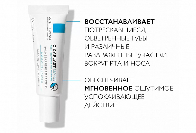 За счёт инновационного компонента МП-липиды Цикапласт помогает восстановить естественный защитный барьер кожи губ. Пантенол в 5% концентрации обеспечивает мгновенное успокаивающее действие. Средство рекомендовано детям с 3-х лет и взрослым