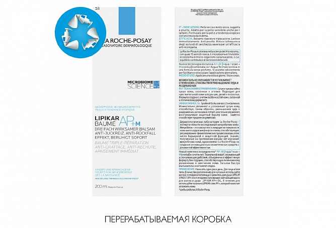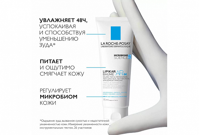 Lipikar Бальзам AP+M - результат более восьми лет исследований лаборатории La Roche-Posay в области микробиома кожи. Новый липидовосполняющий бальзам Lipikar AP+M разрабатывался совместно с дерматологами с учетом особенностей сухой кожи, склонной к атопическому дерматиту.