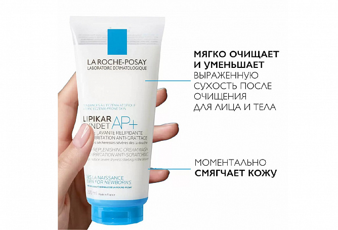 Липидовосстанавливающий очищающий крем-гель для лица и тела младенцев детей и взрослых LIPIKAR SYNDET AP+ мягко очищает кожу младенцев, детей и очень сухую кожу взрослых. Моментально смягчает кожу и уменьшает выраженную сухость кожи после душа.