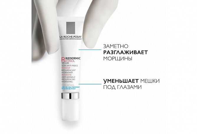 ИНТЕНСИВЫЙ КОНЦЕНТРИРОВАННЫЙ ГЕЛЬ-КРЕМ REDERMIC RETINOL YEUX для контура глаз содержит обновляющий комплекс [ЧИСТЫЙ РЕТИНОЛ + РЕТИНОЛ ПОСЛЕДОВАТЕЛЬНОГО ВЫСВОБОЖДЕНИЯ] для коррекции морщин в сочетании с КОФЕИНОМ для уменьшения следов усталости.