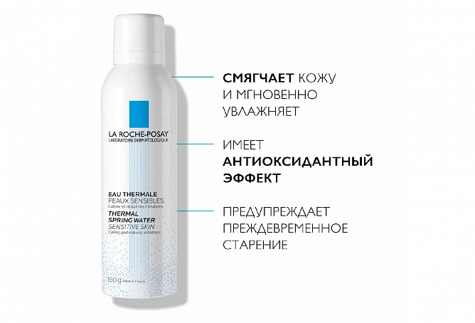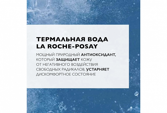 Термальная вода La Roche-Posay отличается высоким содержанием Селена, мощного природного антиоксиданта, который защищает кожу человека от негативного воздействия свободных радикалов. Ее состав представляет уникальное сочетание минеральных солей и олиго-элементов и поддерживает физиологический баланс чувствительной кожи. Нейтрализует свободные радикалы, повреждающие клетки. Оказывает ранозаживляющее, иммуномодулирующее и противовоспалительное действие. Замедляет процессы старения клеток, защищает от UV излучения.