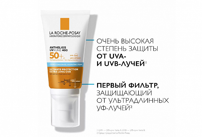 Защита от широкого спектра УФ-лучей: UVB-, UVA- и ультрадлинных UVA-лучей. Инновационный1 UV-фильтр Mexoryl 400 защищает от ультрадлинных UVA-лучей (380-400 нм) которые незаметны, повреждают кожу на глубоком клеточном уровне и составляют 30% УФ-лучей, воздействующих на кожу круглый год.