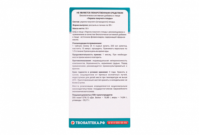 Продолжительность приема: 1 месяц. При необходимости прием можно повторить.