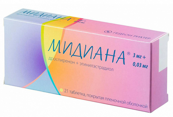 Препарат Мидиана это комбинированный пероральный контрацептив, содержащий этинилэстрадиол и дроспиренон.