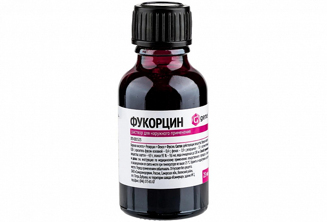 Эффективный комбинированный препарат, обладающий мощным антисептическим и противогрибковым действием. Имеет характерный ярко-малиновый цвет.