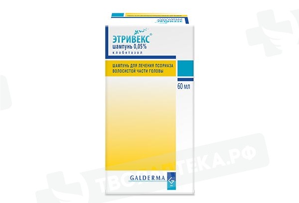 Шампунь Этривекс 0,05% предназначен только для лечения псориаза волосистой части головы и не должен наноситься на другие части тела.