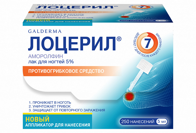 При повторном применении лака Лоцерил, необходимо аккуратно удалить с ногтей оставшийся декоративный лак, затем с помощью прилагаемых пилок обработать пораженные участки ногтей и удалить оставшийся слой лака спиртовыми тампонами.