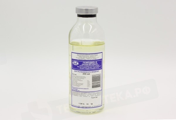 Действие Гемодеза-Н обусловлено способностью низкомолекулярного поливинилпирролидона связывать токсины, циркулирующие в крови и быстро выводить их из организма.