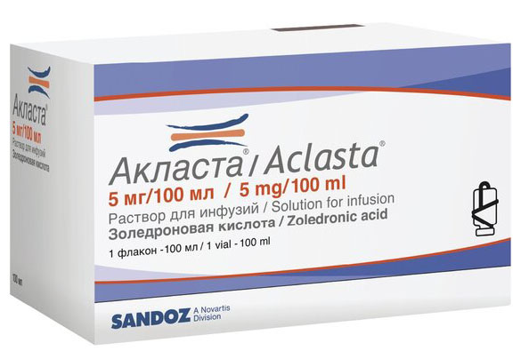 Раствор препарата Акласта® несовместим с растворами, содержащими кальций или другие двухвалентные катионы (например, в одной системе для внутривенного капельного введения).