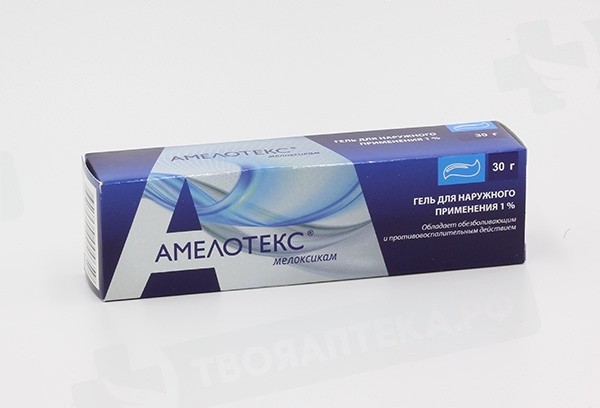 Фармакодинамика Амелотекс гель содержит мелоксикам - нестероидный противовоспалительный препарат (НПВП), обладающий обезболивающим, противовоспалительным действием.