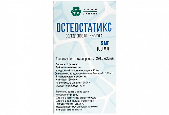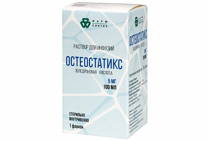 При применении препарата Остеостатикс для профилактики постменопаузального остеопороза (ПМО) общий профиль безопасности препарата был сравним с таковым при лечении ПМО, за исключением НР, возникавших в течение 3-х дней после инфузии: боль, лихорадка, озноб, миалгия, тошнота, головная боль, повышенная утомляемость, головокружение, артралгия, частота которых была выше у пациенток, получавших препарат для профилактики ПМО. Большинство этих НР были легкой или средней степени выраженности и проходили в течение 3-х дней после появления. При повторном введении препарата частота встречаемости данных НР значительно уменьшалась.