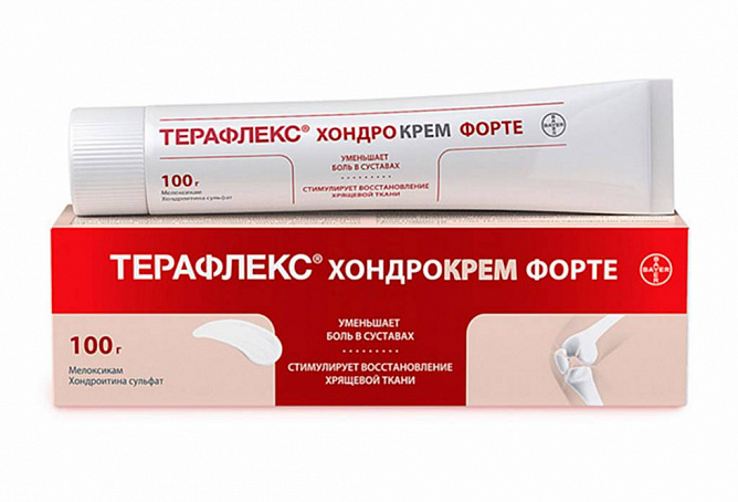 ТерафлексХондрокрем Форте обладает комбинированным действием: замедляет прогрессирование остеоартроза и остеохондроза, оказывает обезболивающее действие, способствует увеличению объема движения суставов (в области нанесения крема), обладает противовоспалительным действием, уменьшает припухлость суставов.