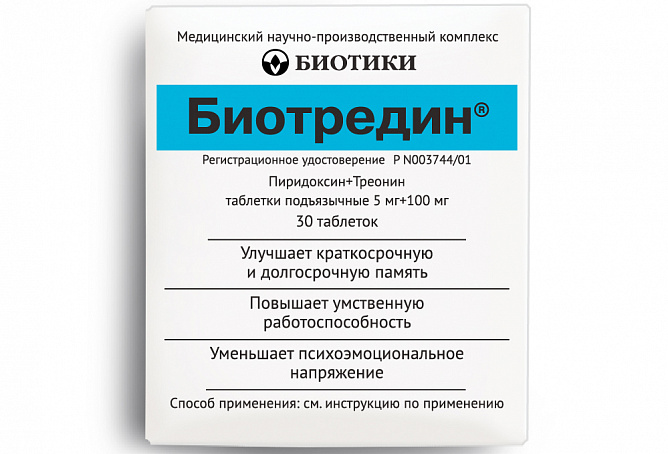 В этих случаях рекомендуется 5-10 дневный курс Биотредина по 1-2 таблетки 2-3 раза в день вместе с Глицином 100 мг под язык за 10-15 минут до приема Биотредина.