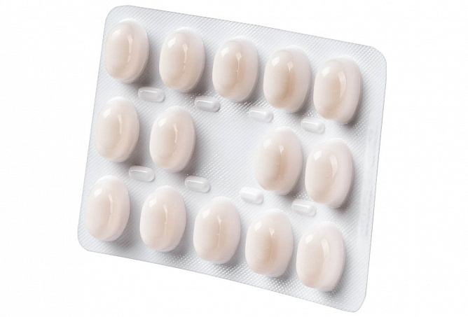 капсула мягкая желатиновая: желатин, сорбитол, глицерол, метилпарагидроксибензоат, титана диоксид (Е 171), краситель железа оксид желтый (Е 172), пропилпарагидроксибензоат, вода очищенная.