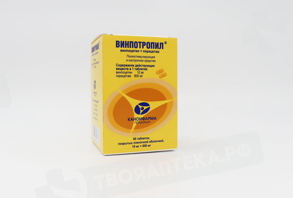 Винпотропил 10мг+800мг таблетки покрытые пленочной оболочкой N60