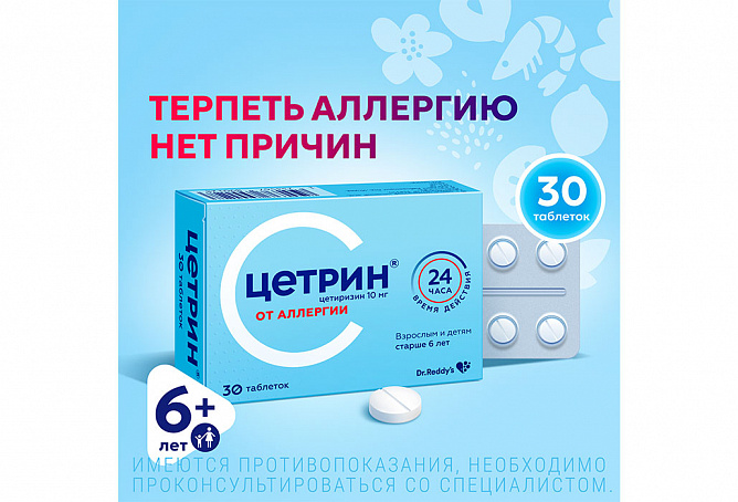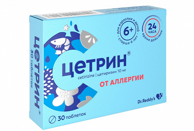 Быстро всасывается из желудочно-кишечного тракта, время достижения максимальной концентрации (TCmax) после приема внутрь – около 1 ч. Пища не влияет на полноту всасывания (AUC), но удлиняет на 1 ч TCmax и снижает величину максимальной концентрации (Cmax) на 23%.При приеме в дозе 10 мг 1 раз в день в течение 10 сут равновесная концентрация препарата (Css) в плазме составляет 310 нг/мл и отмечается через 0,5–1,5 ч после приема. Связь с белками плазмы – 93% и не меняется при концентрации цетиризина в диапазоне 25–1000 нг/мл. Фармакокинетические параметры цетиризина меняются линейно при назначении его в дозе 5–60 мг. Объем распределения – 0,5 л/кг.