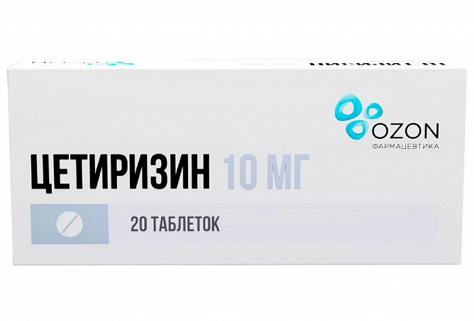 Цетиризин 10 мг таблетки покрытые пленочной оболочкой N20 /Озон/