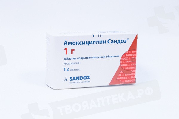 Амоксициллин Сандоз 1000 мг таблетки покрытые пленочной оболочкой N12