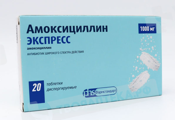 Амоксициллин Экспресс 1000 мг таблетки дисперг N20