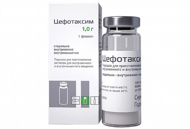 1 флакон содержит: цефотаксим натрия (в пересчете на активное вещество) – 1,0 г
