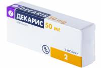 Состав Активное вещество: Одна таблетка Декариса 50 мг содержит 50 мг левамизола (в виде 59 мг левамизола гидрохлорида).