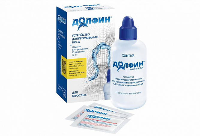 Устройство оториноларингологическое для промывания индивидуальное «ДОЛФИН» емкостью 240 мл, в комплекте со средствами для промывания, предназначено для профилактики и лечения ЛОР заболеваний посредством промывания раствором.