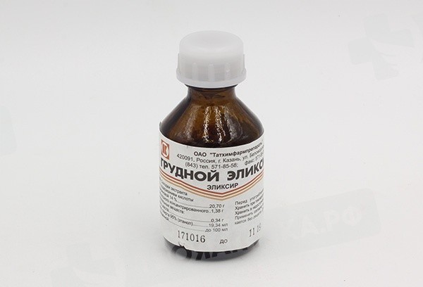 Особые указания Грудной эликсир не следует применять одновременно с противокашлевыми лекарственными средствами, так как это затрудняет откашливание разжиженной мокроты.