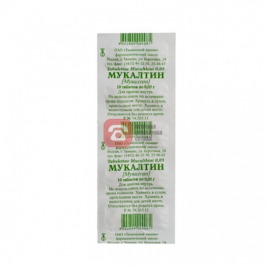 Состав на 1 таблетку Мукалтина 0,05 г