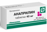 Активное вещество: пропранолола гидрохлорид (анаприлин) 10 или 40 мг,