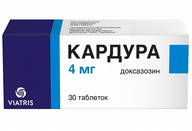 Препарат Кардура может назначаться как утром, так и вечером, и предназначен для приема внутрь.