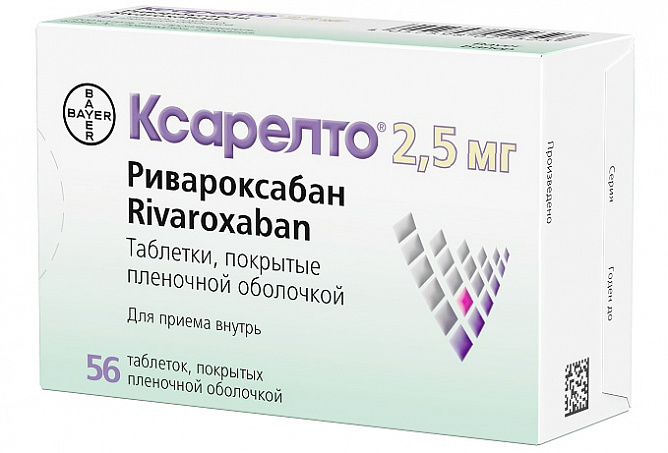 Ксарелто 2,5мг таблетки покрытые пленочной оболочкой N56
