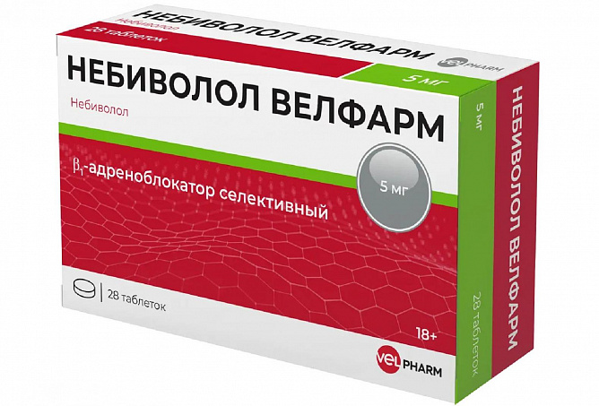 У пациентов с артериальной гипертензией небиволол увеличивает NO-зависимый сосудистый ответ на ацетилхолин, который снижен у пациентов с эндотелиальной дисфункцией. В плацебо-контролируемом исследовании по изучению заболеваемости и смертности у 2128 пациентов старше 70 лет (средний возраст составлял 75.2 года) со стабильным течением хронической сердечной недостаточности (ХСН) со сниженной или сохраненной ФВЛЖ (среднее значение ФВЛЖ: 36 ± 12.3% со следующим распределением: ФВЛЖ <35% у 56% пациентов, ФВЛЖ между 35% и 45% у 25% пациентов и ФВЛЖ больше чем 45% у 19% пациентов), наблюдаемых в среднем в течение 20 месяцев, небиволол, добавленный к стандартной терапии, значительно увеличивал время до возникновения случаев смерти или госпитализации по сердечно-сосудистым причинам (первичная конечная точка для оценки эффективности) со снижением относительного риска на 14% (снижение абсолютного риска составило 4.2%).