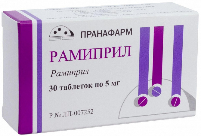 При приеме внутрь абсорбция составляет 50-60%, пища не влияет на степень всасывания, но замедляет абсорбцию. Cmax достигается через 2-4 ч. В печени метаболизируется с образованием активного метаболита рамиприлата (в 6 раз активнее ингибирует АПФ, чем рамиприл), неактивного дикетопиперазина и глюкуронизируется. Все образуемые метаболиты, за исключением рамиприлата, фармакологической активности не имеют. Связывание с белками плазмы для рамиприла - 73%, рамиприлата - 56%. Биодоступность после приема внутрь 2.5-5 мг рамиприла - 15-28%; для рамиприлата - 45%. После ежедневного приема рамиприла в дозе 5 мг/сут устойчивая концентрация рамиприлата в плазме достигается к 4 дню.