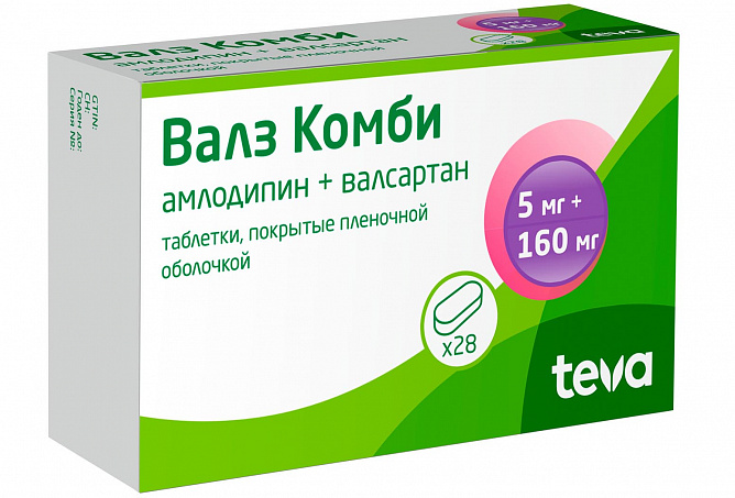 Препарат Валз Комби является комбинацией двух гипотензивных компонентов с дополняющим друг друга механизмом контроля артериального давления (АД) у пациентов с эссенциальной артериальной гипертензией (АГ): амлодипин, производное дигидропиридина, относится к классу блокаторов «медленных» кальциевых каналов (БМКК) и валсартан - к классу антагонистов рецепторов ангиотензина II (АРА II). Комбинация этих компонентов обладает взаимно дополняющим антигипертензивным действием, что приводит к более выраженному снижению АД по сравнению с таковым на фоне монотерапии каждым препаратом.