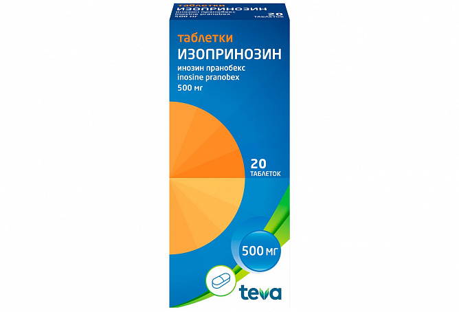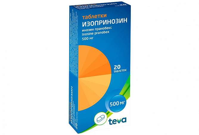1 таблетка содержит: действующее вещество: инозин пранобекс (Изопринозин) – 500,0 мг; вспомогательные вещества: маннитол 67,0 мг, крахмал пшеничный 67,0 мг, повидон К 30 10,0 мг, магния стеарат 6,0 мг.