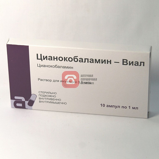 Состав: На 1 мл: Активное вещество: В 1 мл содержится Цианокобаламина -200 или 500 мкг Вспомогательные вещества: вода для инъекций, натрия хлорид.