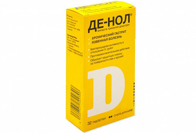 Де-нол 120 мг таблетки покрытые пленочной оболочкой N32