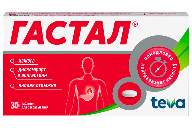 Препарат Гастал® - комбинированное антацидное средство, которое снижает повышенную кислотность желудочного сока и не оказывает стимулирующего влияния на секрецию желудочного сока.